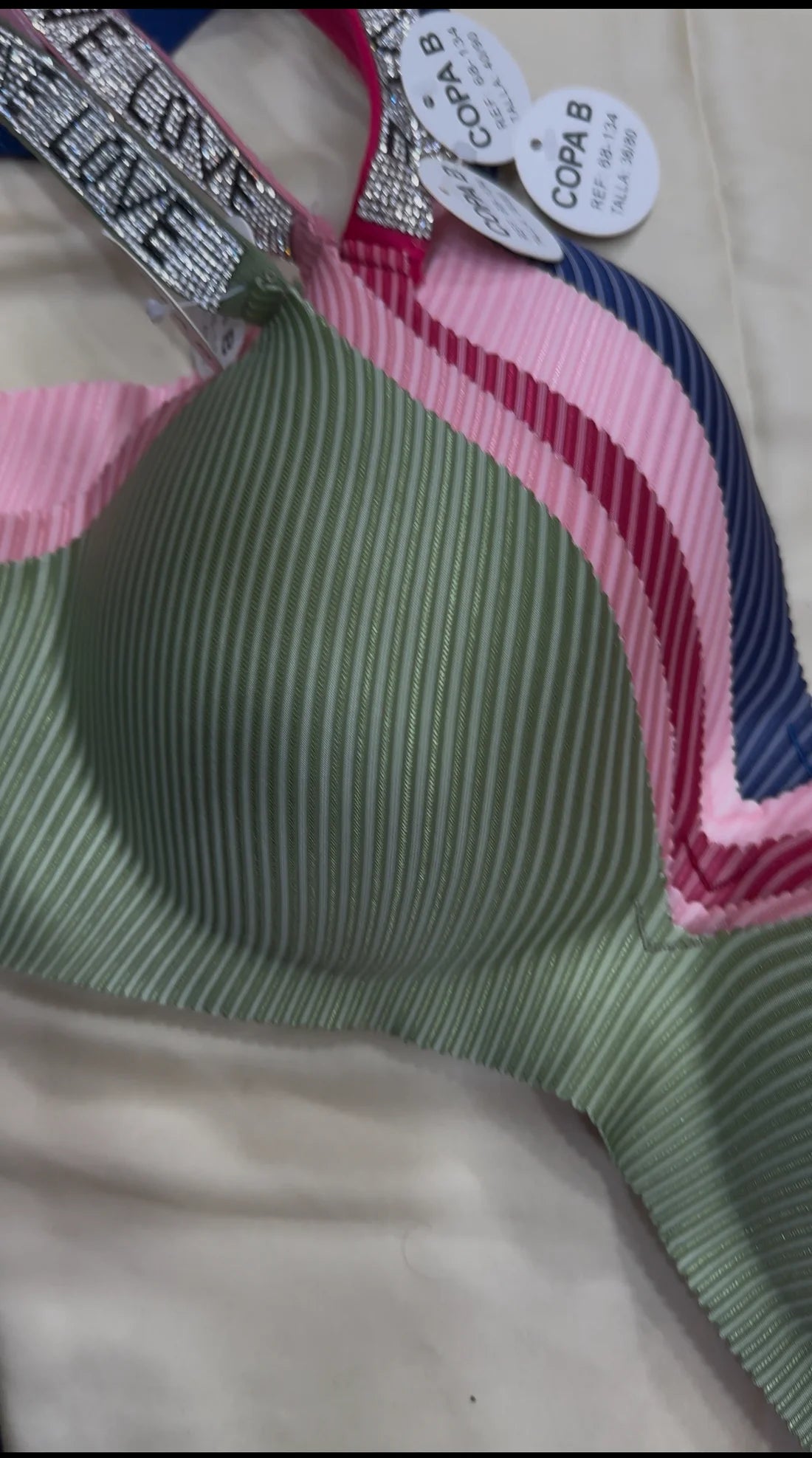 The padded bra features lifted support, seamless cups, and stunning crystal-embellished straps with “LOVE” detailing, adding a glamorous touch to your intimate wear. The matching panty is crafted with the same premium fabric, offering a comfortable and stylish fit for all-day ease.
