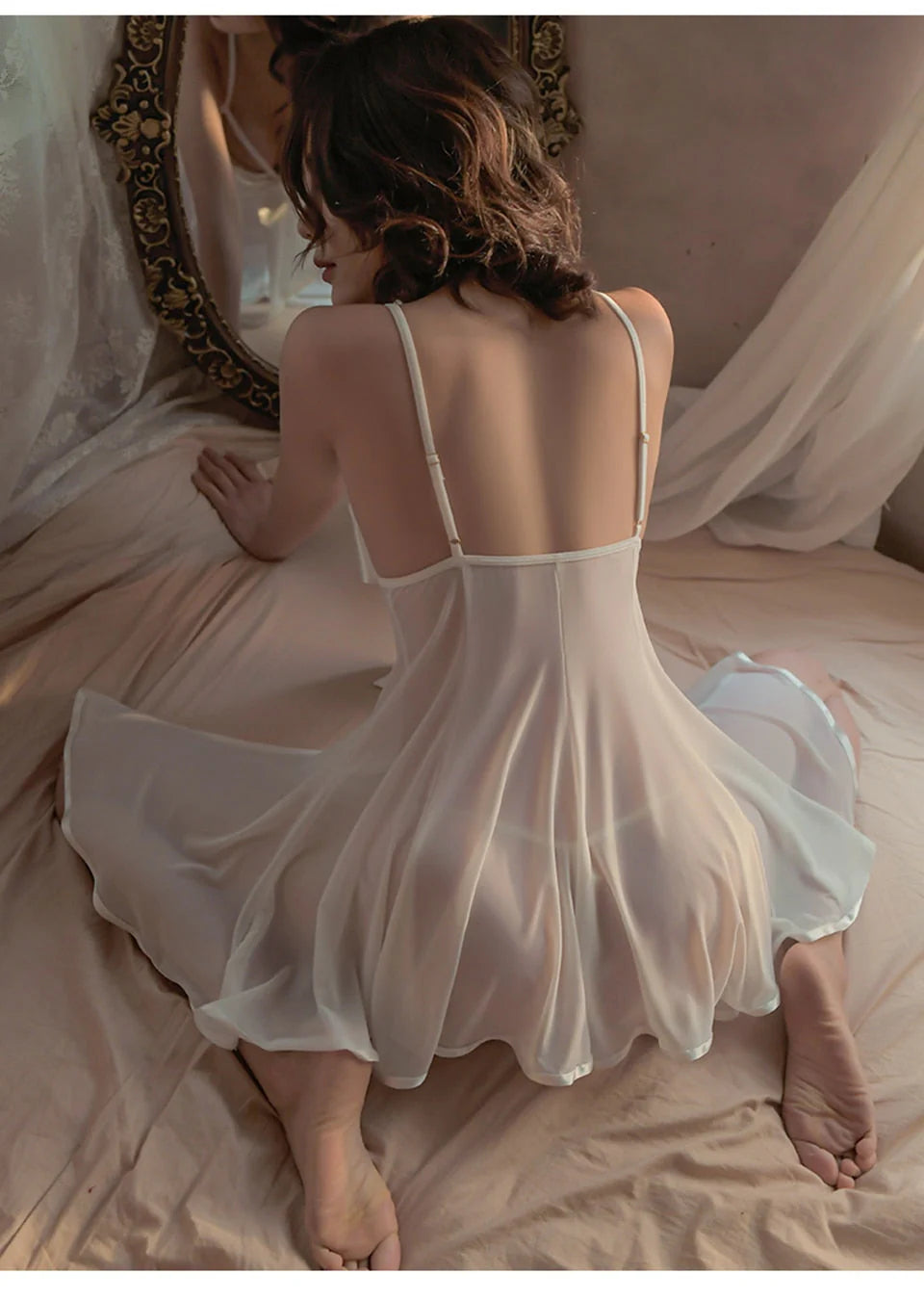 Elegant Bow-Front Lace Babydoll Short Silky Nighty
